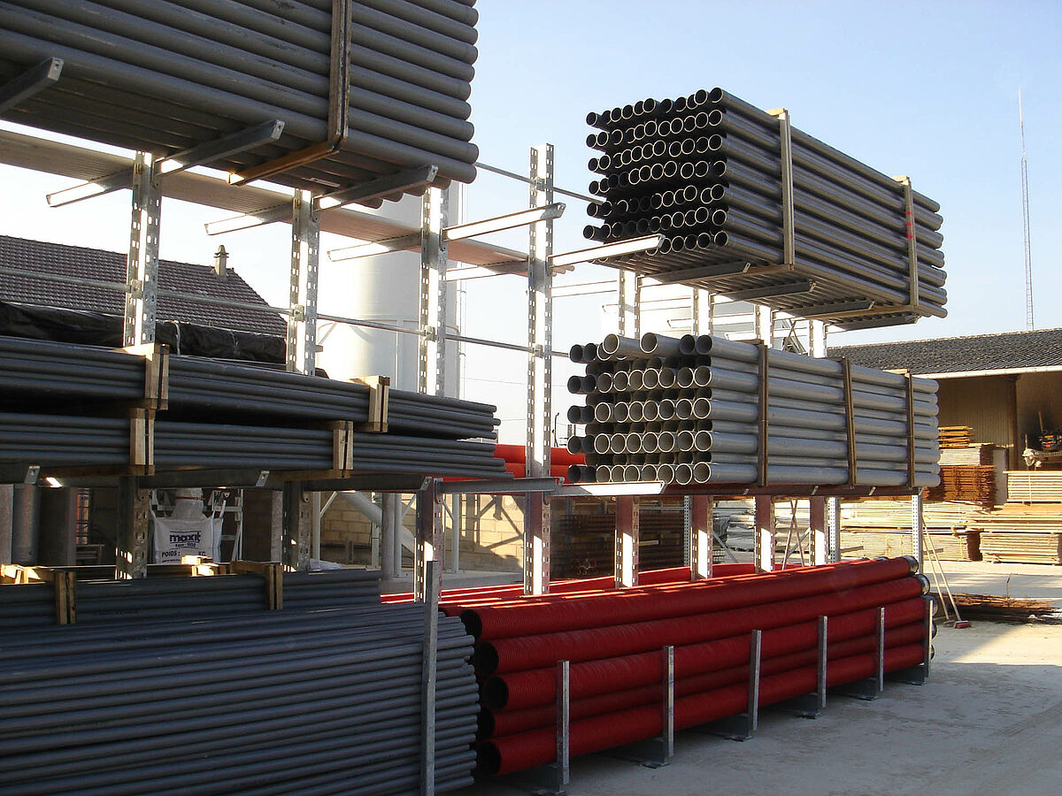 Voor de opslag van aluminium en kunststof bewijst de draagarmstelling zich als de optimale opslagpoplossing voor langgoedmaterialen in alle vormen en van alle aard. Aluminium en kunststof profielen, PVC Buizen en platen, regenpijpen, vensterramen en dakgoten en alle ander voorkomend lang materiaal kunnen met dit stellingsysteem bijzonder plaatsbesparend worden opgeslagen.