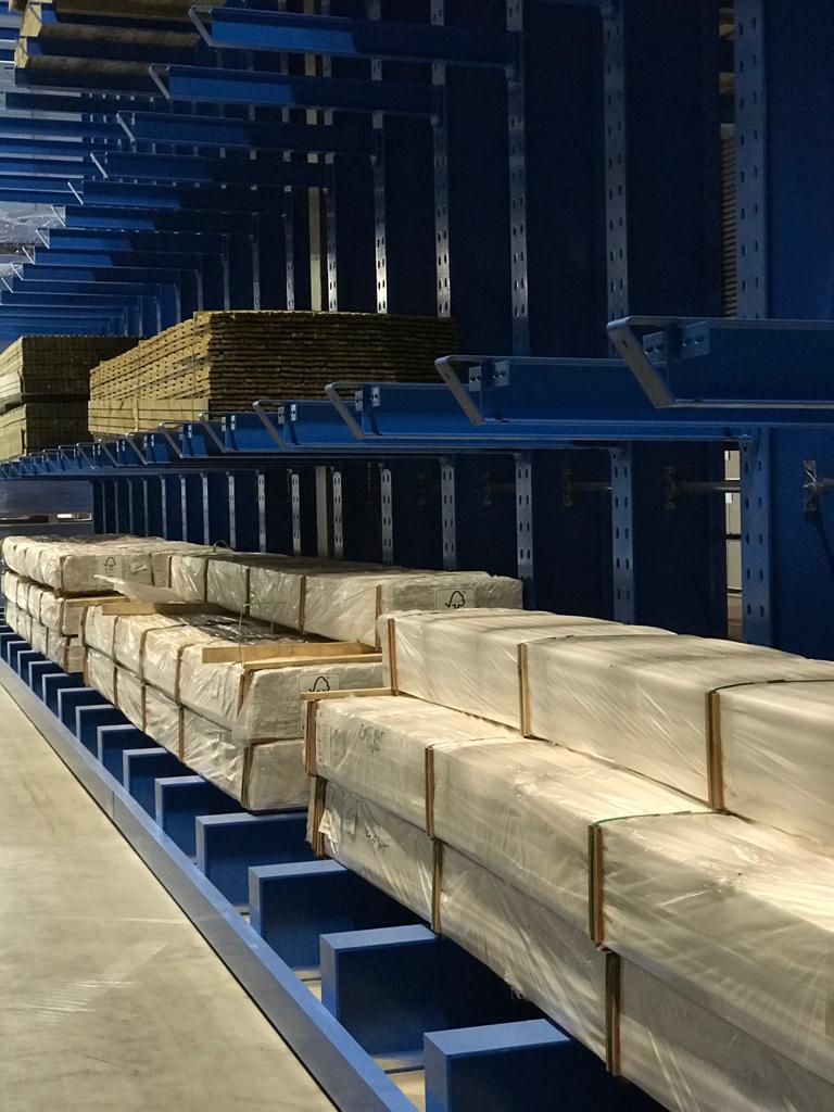roosters: op deze manier kan materiaal dat op pallets is opgeslagen ook flexibel worden opgeslagen in de draagarmstellingen. Het stellingsysteem wordt bediend met een zijlader en truckgeleiding op de voeten van de stelling vergemakkelijken het manoeuvreren in de stellinggang.