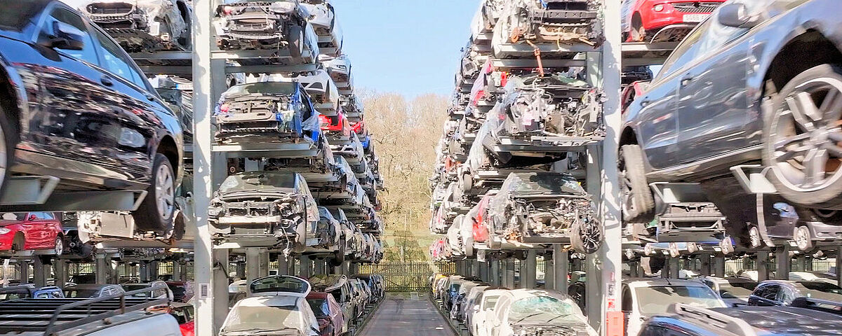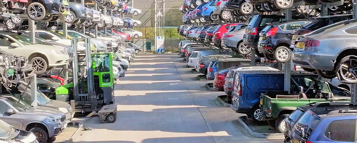 Om zoveel mogelijk recycle voertuigen, altijd direct toegankelijk te hebben, slaat Silverlake Automotive Recycling, Hampshire, auto's, SUV's en bestelwagens op in draagarmstellingen van OHRA. De meer dan 8 meter hoge stellingen maken het mogelijk om vijf voertuigen, elk tot 2 ton zwaar, veilig boven elkaar te plaatsen. De stellingrijen zijn voorzien van geleiderails, zodat de voertuigen met een zijlader gemakkelijk in en uit de draaqarmstelling kunnen worden gehaald. Extra voordeel is dat hierdoor de gangpaden tussen de stellingen bijzonder smal kunnen worden gehouden, waardoor er tevens meer opslagcapaciteit per vierkante meter ontstaat. In totaal kan Silverlake hierdoor circa 2.500 recycle voertuigen op het terrein opslaan
